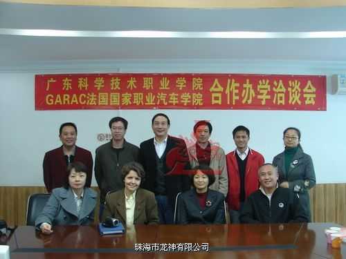 2010年1月法國國家職業(yè)汽車學(xué)院國際項目合作負(fù)責(zé)人張丹宇老師與外交部阿若略女士在我司領(lǐng)導(dǎo)的陪同下到廣東科學(xué)技術(shù)職業(yè)學(xué)院洽談合作辦學(xué),受到學(xué)院領(lǐng)導(dǎo)及老師的熱情接待和歡迎。會上廣科院周院長介紹了與龍神公司已愉快地合作三年,培養(yǎng)出的學(xué)生得到社會用人單位的認(rèn)可,充分肯定了與龍神合作辦學(xué)模式,并感謝龍神在汽車鈑噴技術(shù)及設(shè)備上給予的幫助和支持。我司彭總曾經(jīng)在法國留學(xué),對法國教學(xué)體質(zhì)有一定的了解,也希望為法國汽車學(xué)院與中國搭建長期合作的平臺,從而推動汽車后市場的發(fā)展;促進(jìn)鈑噴技術(shù)的國際交流,使鈑噴行業(yè)國際化。通過此次友好洽談參觀考察,法國國家職業(yè)汽車學(xué)院國際項目合作負(fù)責(zé)人表示將會進(jìn)一步了解中國汽車鈑噴技術(shù),加強國際交流。