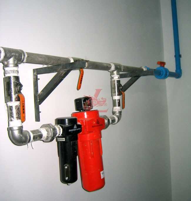 北京PPG工程,空壓機(jī)房設(shè)備連接 主管道部分示意圖 空壓機(jī)房設(shè)備連接 全不銹鋼帶旁通的凈化設(shè)備 主管路帶旁通的過(guò)濾系統(tǒng) 烤房專用供氣管道及過(guò)濾 2007-08-25 17470