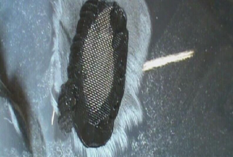 步驟6:把無銹加固網(wǎng)的周圍熔植在塑料件上,熔植要有一定的深度以使其牢固,要避免在后續(xù)的打磨中使邊角裸露,如圖1-6所示。