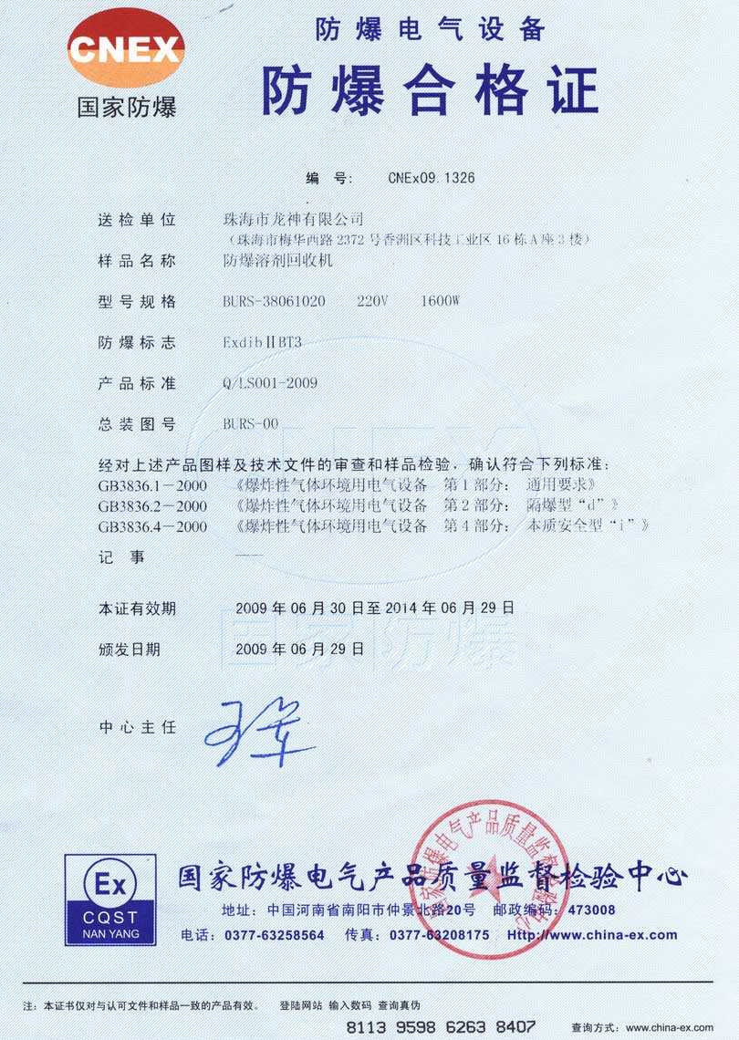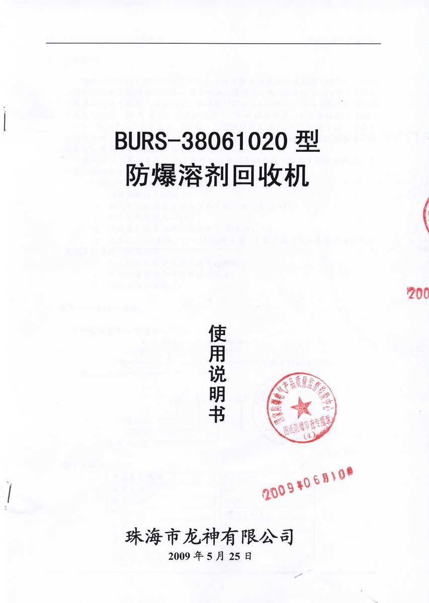防爆認(rèn)證 防爆溶劑回收機(jī)防爆合格證 BURS系列防爆溶劑回收機(jī)技術(shù)條件 BURS-38061020型防爆溶劑回收機(jī) 使用說(shuō)明書 BURS-38061020型防爆溶劑回收機(jī) 圖紙資料 (以上圖片均可點(diǎn)擊放大) 2012-11-27 34522