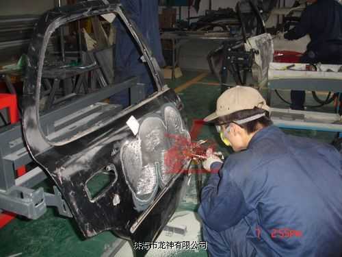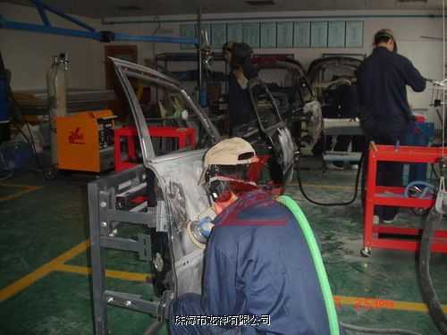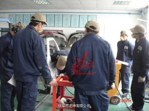 學(xué)員熟練操作鈑金快修設(shè)備